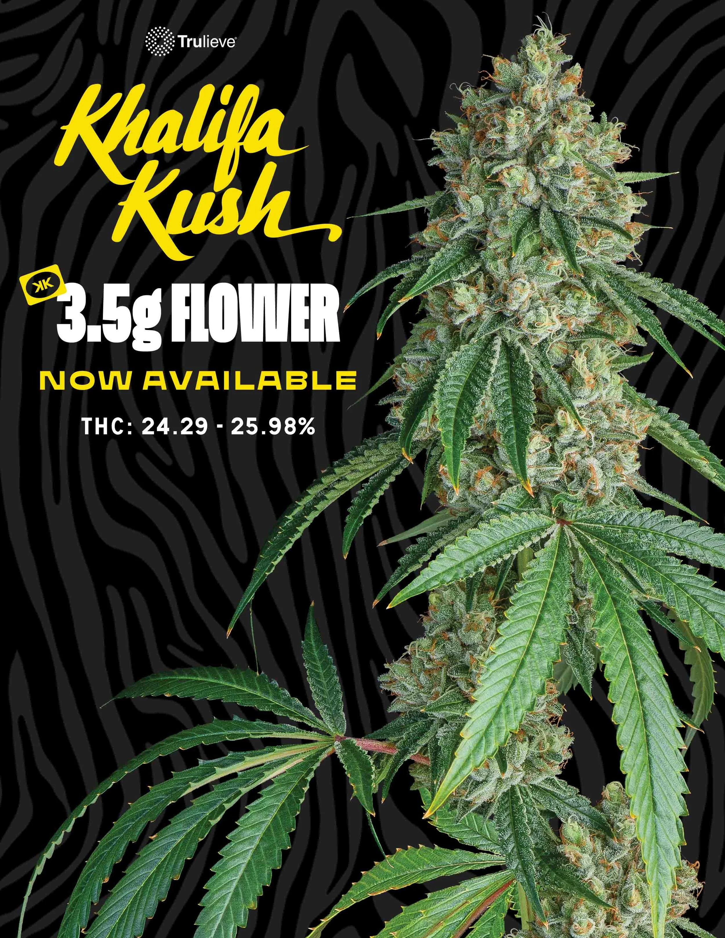 Khalifa Kush by Wiz Khalifa is a premium cannabis line known for its signature genetics, bold terpene profiles, and consistently potent effects. Developed in partnership with Trulieve, Khalifa Kush centers around the iconic KK strain, originally cultivated for Wiz Khalifa himself. The brand focuses on carefully grown, high-quality flower and derivative products that highlight the strain’s distinctive lemon-pine aroma, dense structure, and uplifting, euphoric effects. Positioned as a top-shelf offering within Trulieve’s lineup, Khalifa Kush combines celebrity-driven genetics with meticulous cultivation practices to deliver a refined, connoisseur-level cannabis experience.